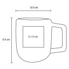 Taza de cerámica con acabado mate y asa rectangular.