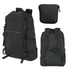 Mochila plegable con compartimento principal con porta laptop de 16″, dos compartimentos frontales, dos bolsas laterales con elástico y tirantes con broches.