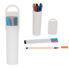 Set de 12 colores con envase de plástico y tapa transparente.