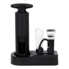 Set para vinos que incluye: 1 decantador, 1 corcho de sellado al vacío, 1 corta etiquetas, un destapador manual y 1 base para los artículos.