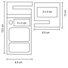 Organizador de escritorio que sirve como soporte para celular, con espacio para banderas adhesivas, clips y bolígrafo.