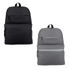 Mochila con 3 compartimentos, 1 compartimento principal 2 compartimentos frontales, 2 mallas laterales, respaldo, tirantes acolchaos y asa superior.