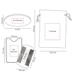 Área de impresión: 7 x 8 cm Bolsa / 6 x 2.5 cm Cepillo / 6 x 1 cm Peine / 4 x 5.5 cm Funda
