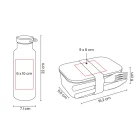 Medidas: 16.2 x 6 x 11.5 cm Lonchera / 7.1 x 22 cm Termo / 26 x 25.5 x 7.5 cm Caja