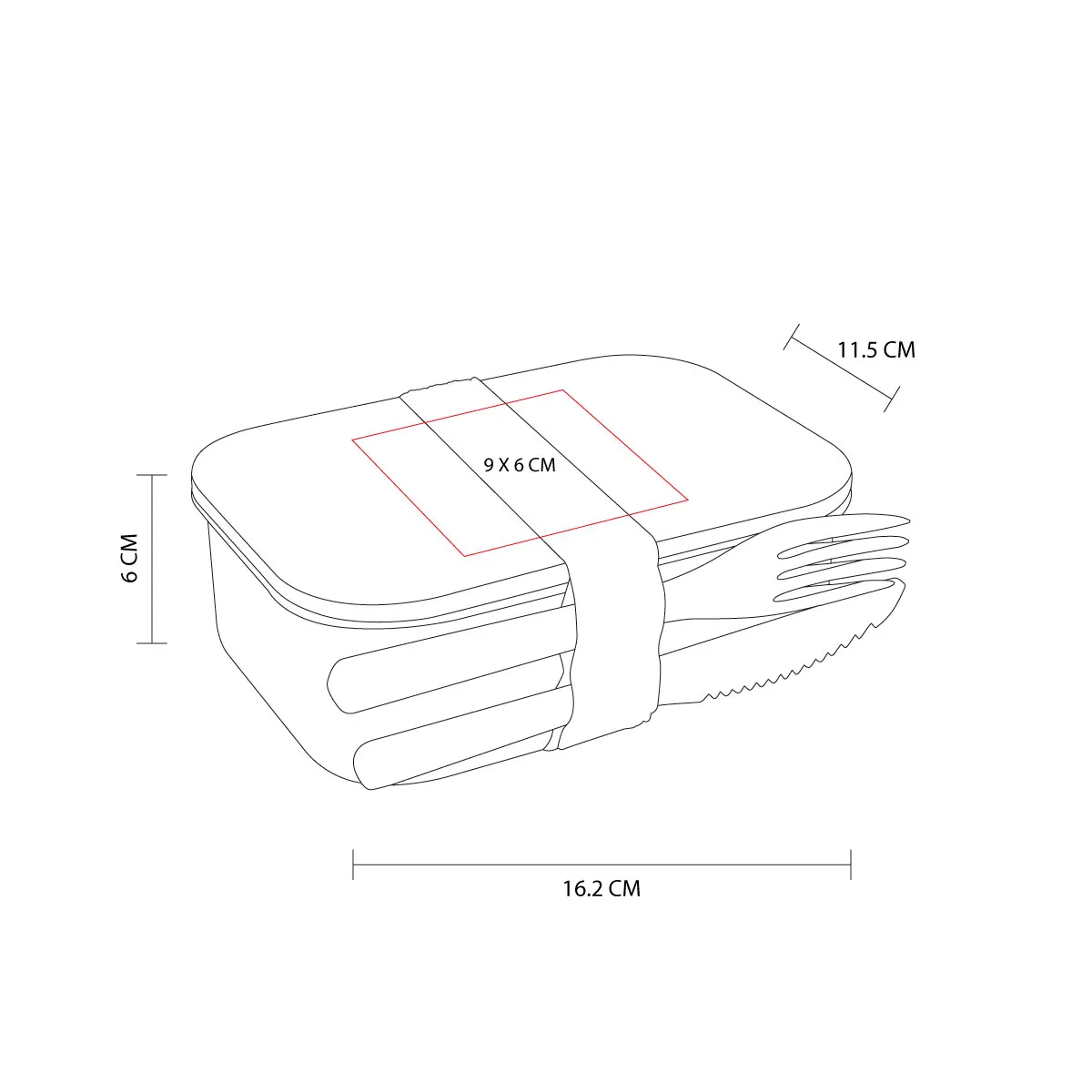 Área de impresión: 9 x 6 cm Lonchera / 6 x 10 cm Termo