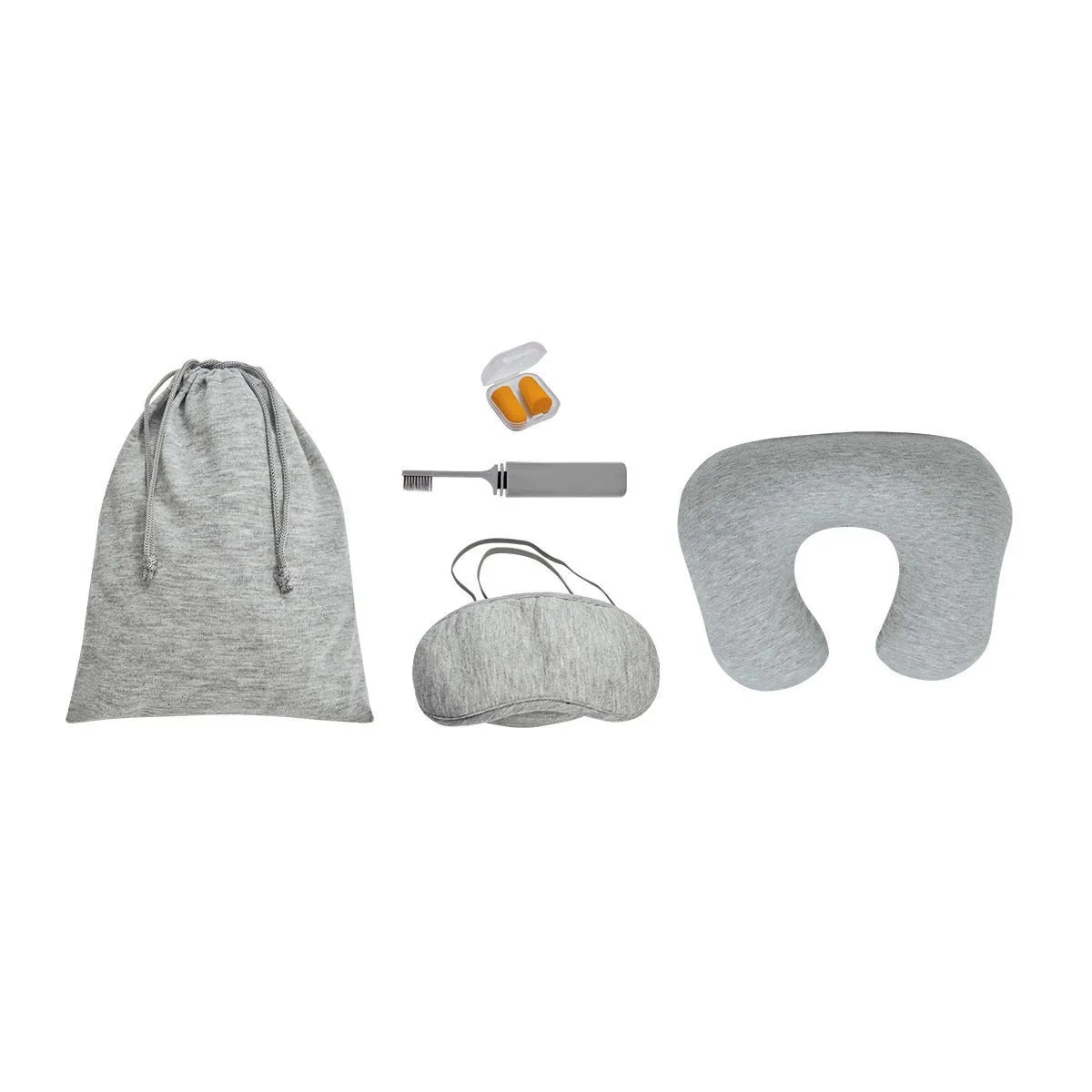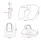 Medidas: 15 x 20 cm Bolsa / 18.5 x 10 cm Antifaz / 38 x 26.5 cm Almohada / 3.5 x 3.5 cm Tapones / 2.4 x 16.2 cm Cepillo Dental
