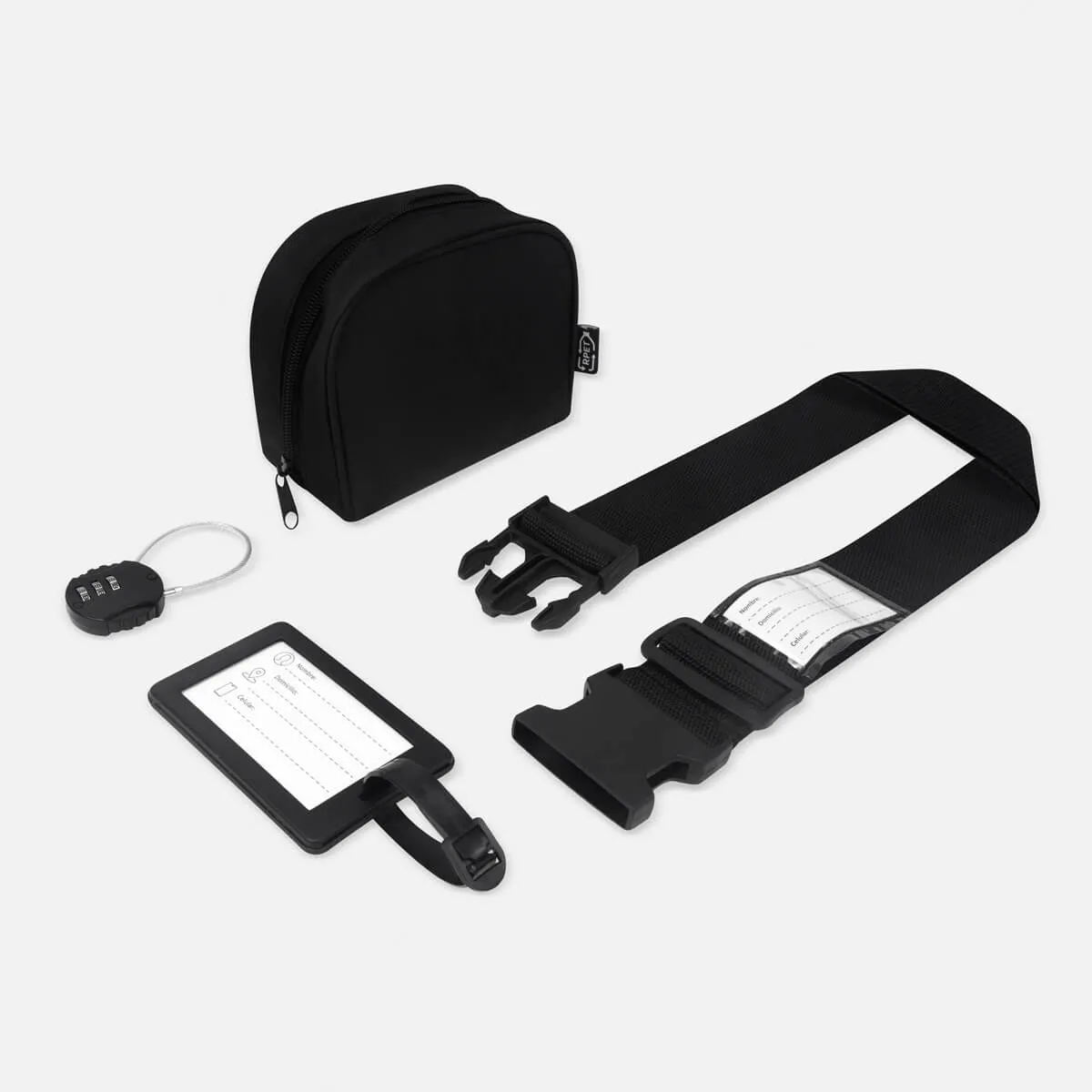 Material: Plástico Reciclado Estuche / Metal Candado / Poliéster Cinta / Plástico Identificador