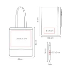 Área de impresión: 20 x 15 cm Caja / 27.5 X 24 cm Bolsa / 8 x 4 cm Libreta / 0.7 x 3 cm Bolígrafo