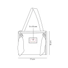 Medidas: 17 x 15 x 5.5 cm Bolsa / 26 x 8.5 cm Banda / 8.3 x 10 cm Cepillo / 6.5 x 10 cm Esponja