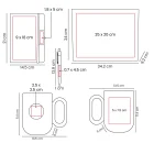 Medidas: 34.2 x 24 x 9.2 cm Caja / 14.5 x 21 cm Libreta / 1 x 13.9 x 1.4 cm Bolígrafo / 13.5 x 11.4 x 9 cm Taza