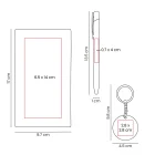 Medidas: 9.7 x 17 cm Caja / 1 x 13.5 cm Bolígrafo / 4.5 x 9.8 cm Llavero