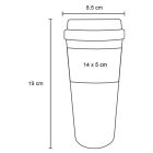 Termo de plástico con doble pared y tapa enroscable con seguro deslizable.