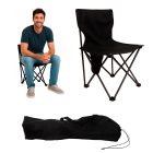 Mini silla portátil plegable de metal con asiento y respaldo de poliéster. Incluye funda con asa y correa ajustable.