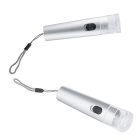 Lámpara triangular con un LED, botón de encendido y apagado. Incluye correa de mano y 3 baterías de botón.