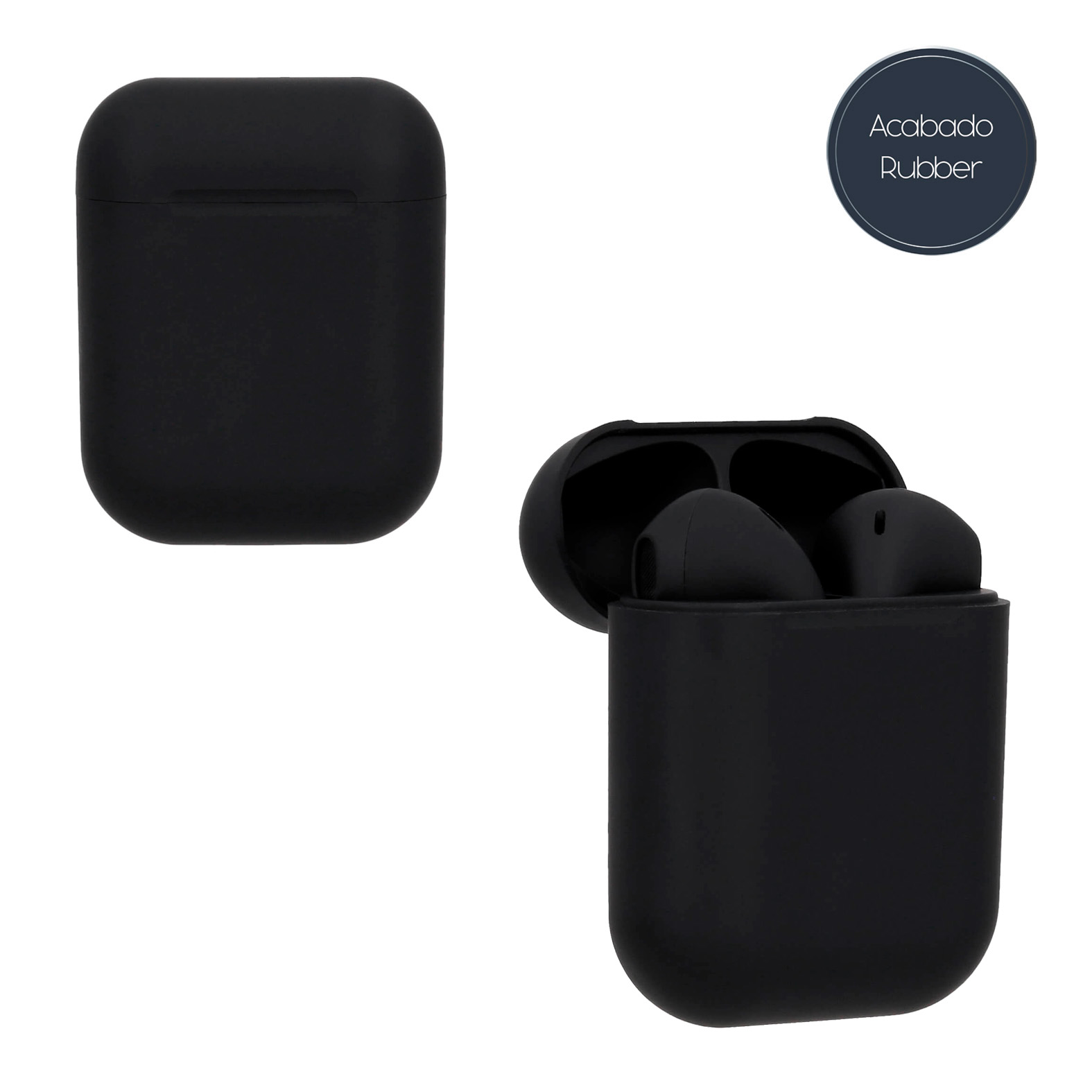 Audífonos inalámbricos con acabado rubber, batería recargable y mecanismo touch. Incluye cable de carga tipo C.