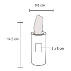 Caja con 60 pañuelos desechables con forma cilíndrica.