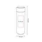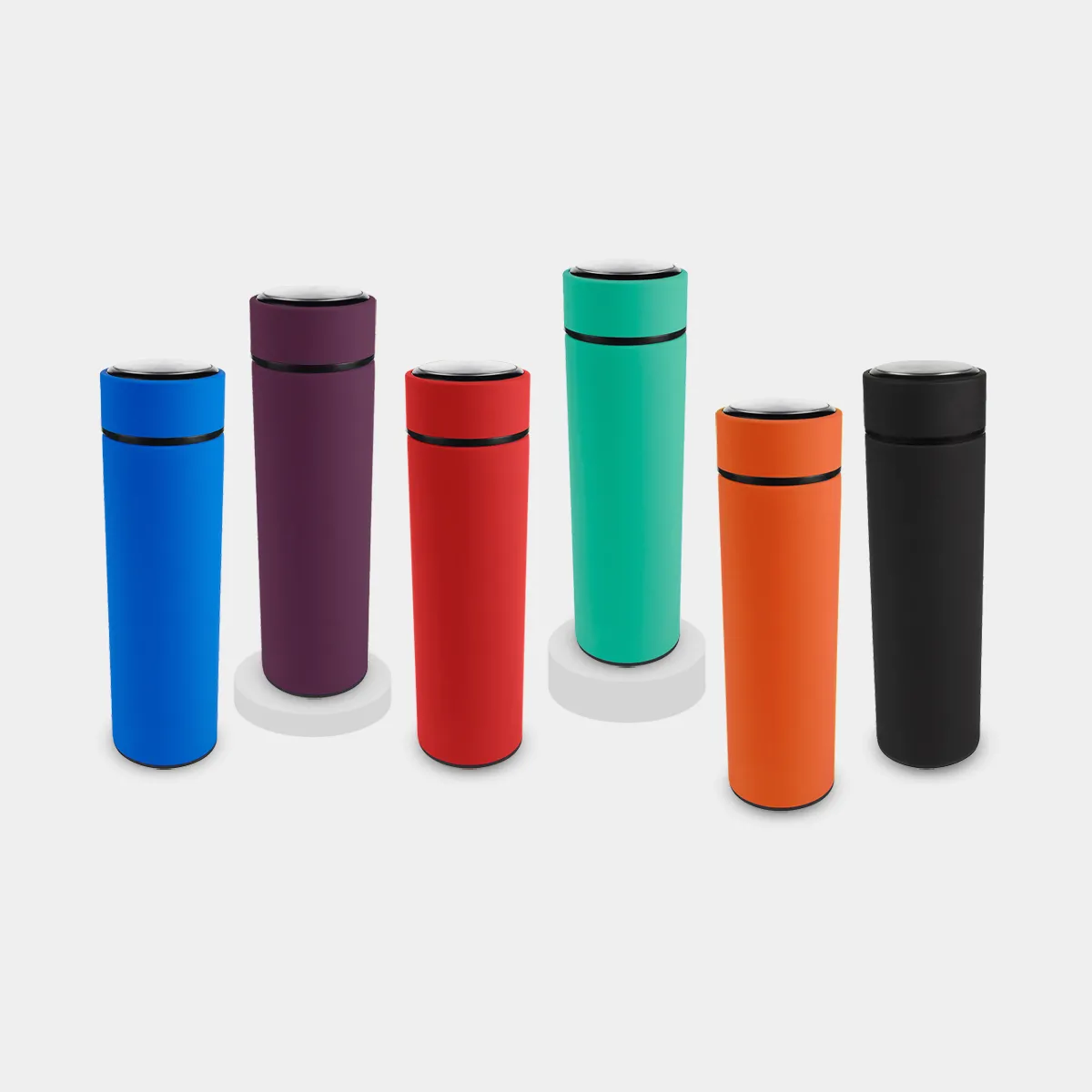 Doble pared. Cerrado al vacío. Pared interna y externa acero inoxidable. Mantiene temperatura caliente 6 hrs y temperatura fría 8 hrs aproximadamente. Incluye infusionador y caja individual.