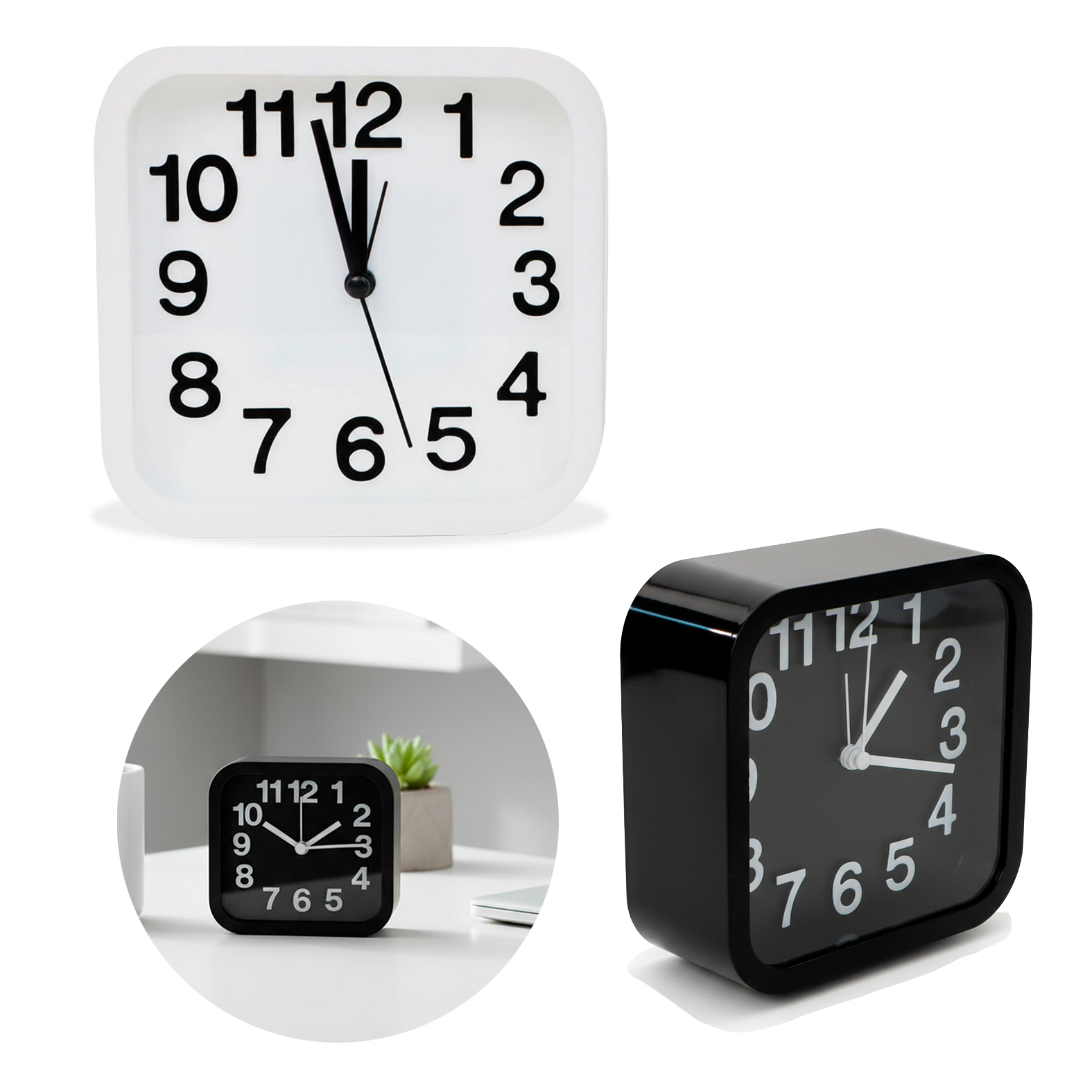 Reloj de escritorio cuadrado con alarma. Batería incluida.