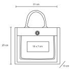 Bolsa de yute de 169 grs/m2 laminado con 1 compartimento principal con botón para cierre, 1 frontal de algodón con velcro y asas.