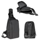 Bolsa de hombro de poliéster con compartimento principal, dos bolsillos frontales con cierre y correa ajustable.