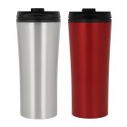 Termo de doble pared con interior de plástico, tapa enroscable y válvula de seguridad.