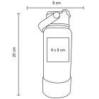 Termo con doble pared de acero inoxidable, insulado al vacío y base de silicón. Cuenta con tapa enroscable, boquilla abatible, popote y asa.