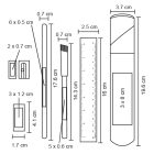 Juego escolar de cartón que incluye 1 lápiz, 1 bolígrafo, 1 sacapuntas, 1 goma y 1 regla de 15 cm.