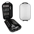 Set de herramientas portátil. Contiene 22 accesorios: 4 desarmadores relojero, 1 cutter, 1 dado de extensión, 4 dados, 1 mango y 11 puntas intercambiables.