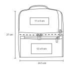 Lonchera en la parte superior y hielera en la parte inferior, 1 bolsa frontal, con correa ajustable y asa superior.