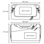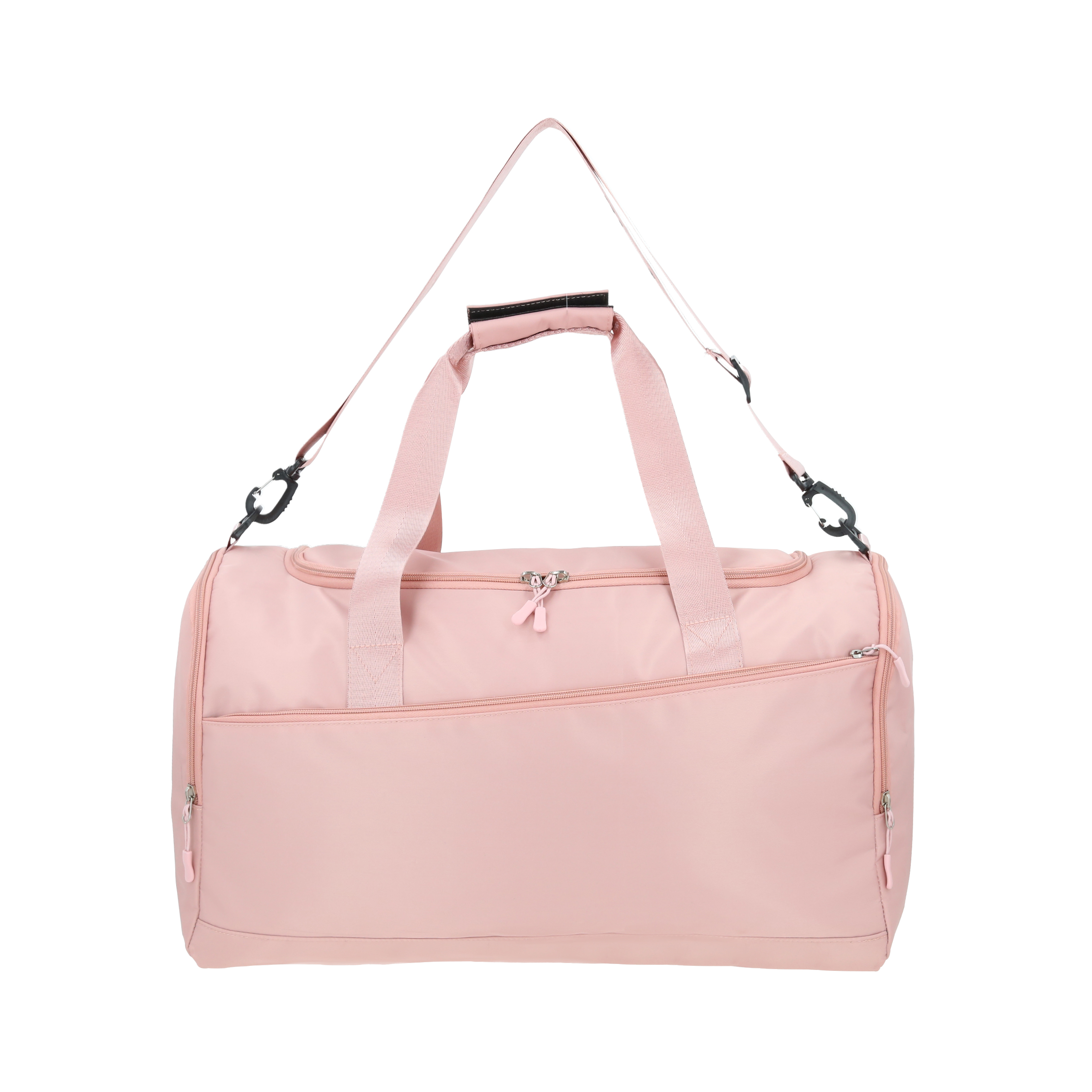 Maleta deportiva con 4 compartimentos: 1 compartimento principal, 1 compartimento para calzado, 1 compartimento lateral 1 frontal, 2 asas y correa ajustable.