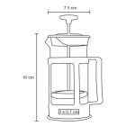 Cafetera de cristal tipo francés con base y tapa de plástico, filtro de acero inoxidable.