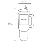 Termo con doble pared de acero inoxidable, insulado al vacío, acabado rugoso, con asa lateral y tapa enroscable con popote.