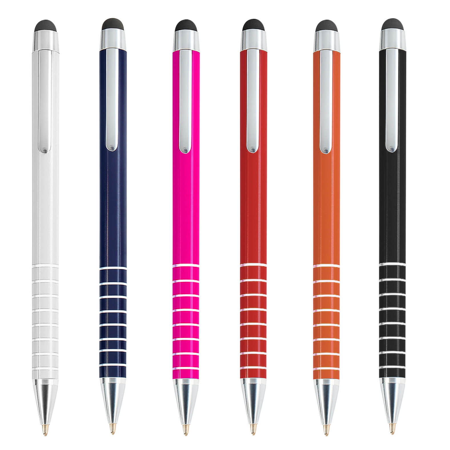 Bolígrafo de aluminio con mecanismo retráctil y goma óptica touch screen.