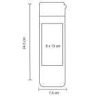 Cilindro de plástico traslúcido con tapa enroscable y asa que se incorpora a la tapa.